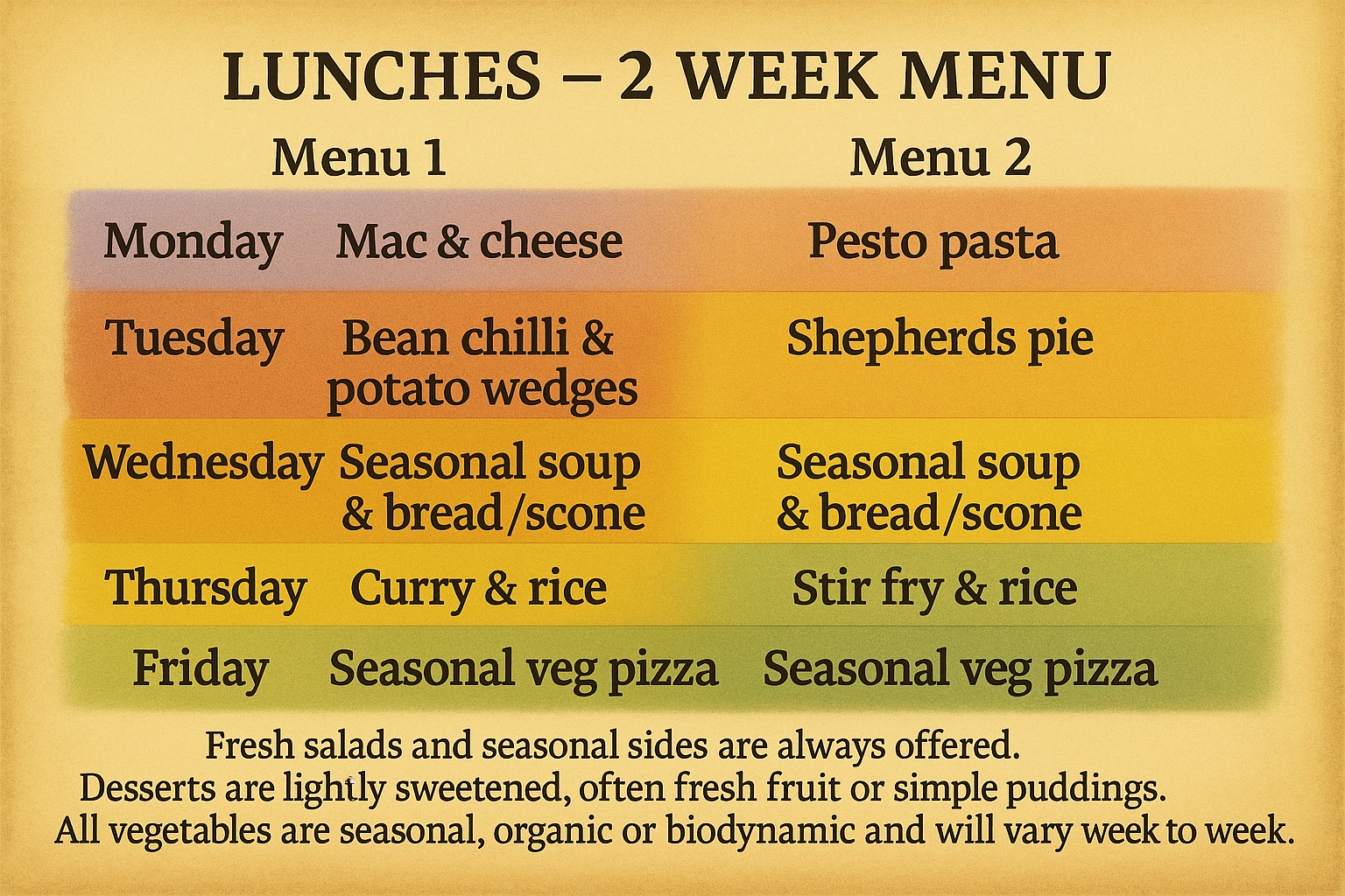 🌿 Our menu follows a two-week rhythm 🌿